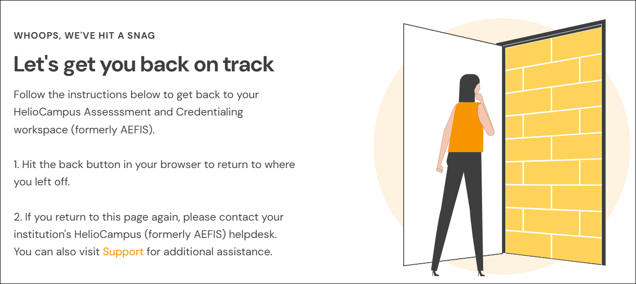 Instructors cannot view a syllabus in Canvas' Student View, and instead will see this, "Let's get you back on track" error.
